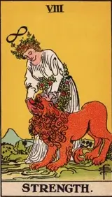 Keywords: : Inner resilience, courage, influence, patience, ethical leadership, inner strength, self-belief, resilience, nurturing power, courageous abundance., such as self-doubt, lack of confidence, inner turmoil, and uncontrolled emotions. Instead of the natural harmony and balance that the upright card suggests, the reversed Strength might signify a struggle with inner conflicts and a feeling of being overwhelmed by life's challenges. This card encourages you to reflect on how your internal power is being directed and how it might be better harnessed to serve your true self.